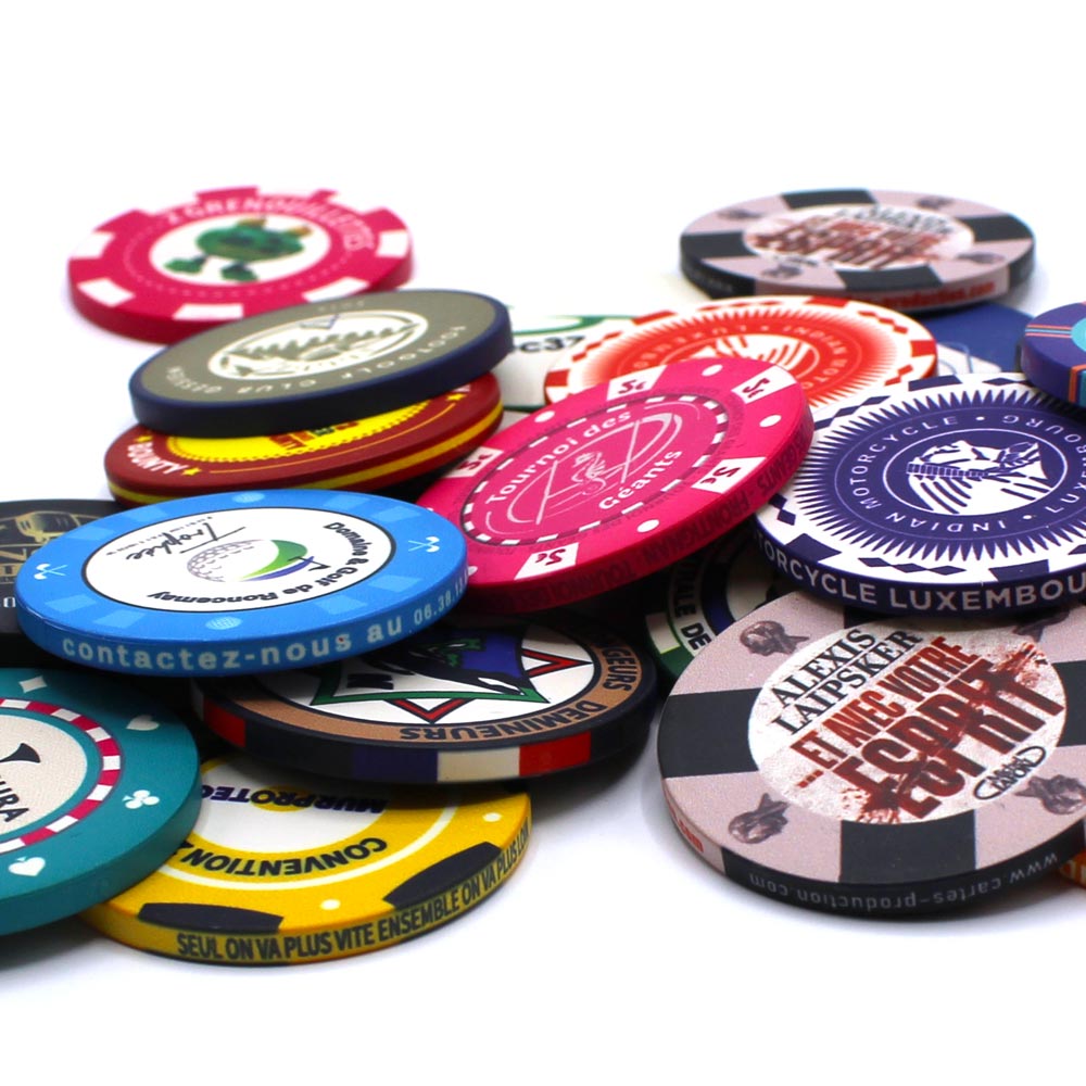 Custom ceramic chips are perfect for advertising, business cards, gift certificates, fake currency, drink tokens, and more.